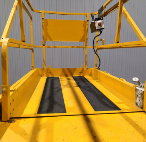 Подъемник заряжается от обычной розетки 220В. Время зарядки – 8 ч, время работы аккумуляторов – 8 ч. Дорожный просвет 13 см позволяет работать как в помещении, так и в уличных условиях.